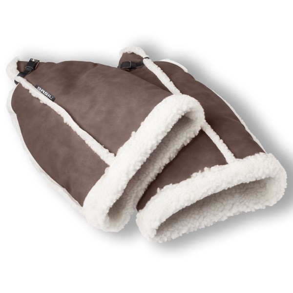 En voor 20,- heb je deze prachtige moffen ofwel handwarmers van Basil bij Athleteshop: een set handwarmers van kunstleder, met zachte binnenvoering. Eenvoudige bevestiging aan het stuur met klittenband en riempje. Ook zonder duim dus als je iets op je stuur moet bedienen moet je je hand wel uit de mof halen.