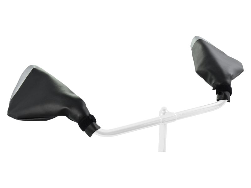 We hebben eerder al de Cobrafist besproken, jaren geleden. Maar die zijn hier maar moeilijk te verkrijgen. Het kan ook veel goedkoper: de goedkoopste die we hebben kunnen vinden zijn maar een tientje: dat zijn deze Mokix bij K-Parts. Je kan er zonder handschoenen in, maar ook mét: da’s helemaal ultrawarm! Ze zijn universeel en waterdicht, voordelig en comfortabel gevoerd. Eenvoudig op het stuur te bevestigen, en ze kunnen de hele winterperiode blijven zitten. De handmoffen hebben ook een duim voor het bedienen van de stuurknoppen. Materiaal: Nylon, met gevoerde binnenzijde.